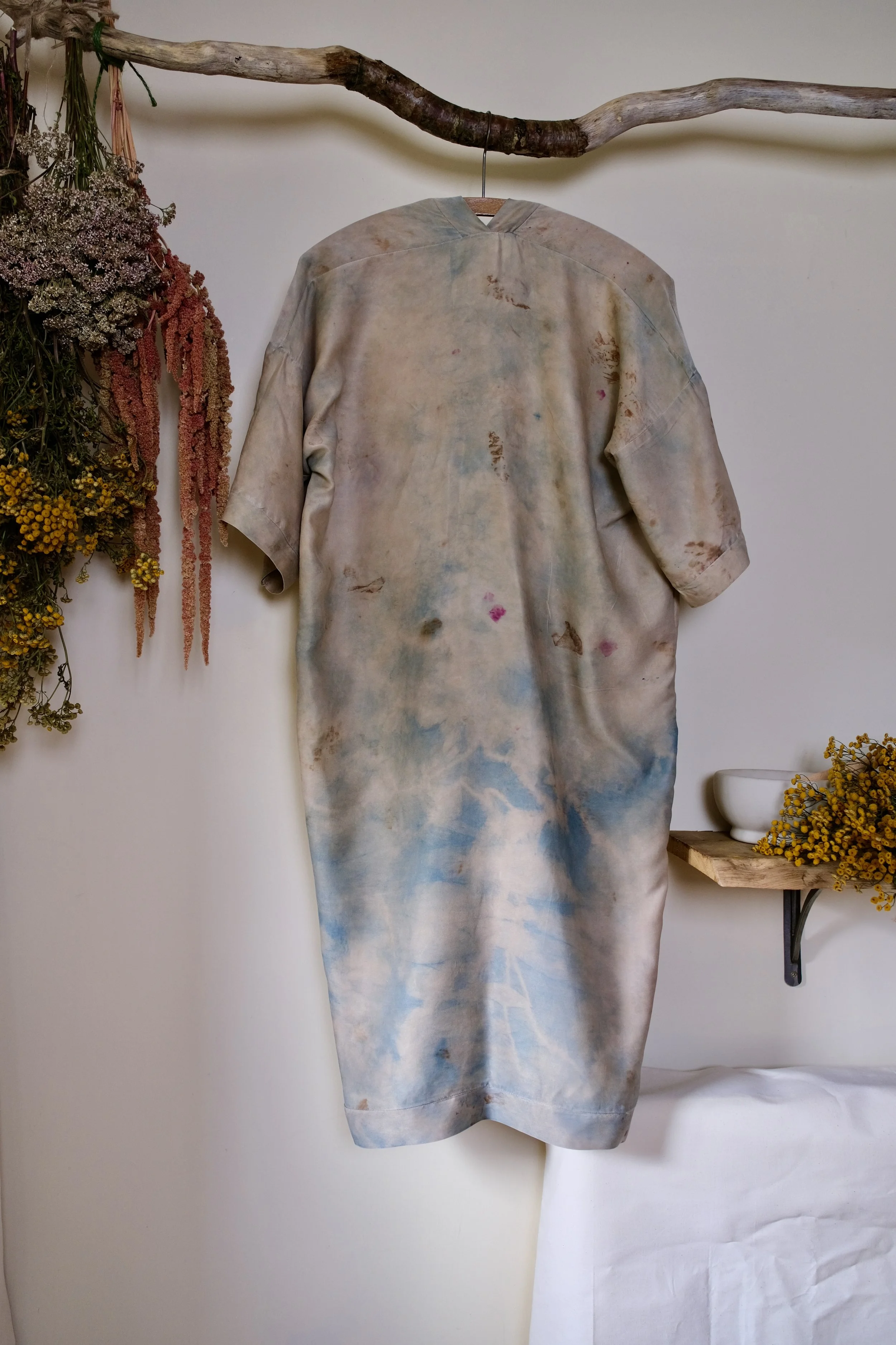 Please be sure to look after delicate natural dyed silks by hand washing with lukewarm water, ph neutral organic gentle soap and air dry. Never put in a washing machine or tumble dryer or use conventional soaps or detergents which can shift or ruin colours.