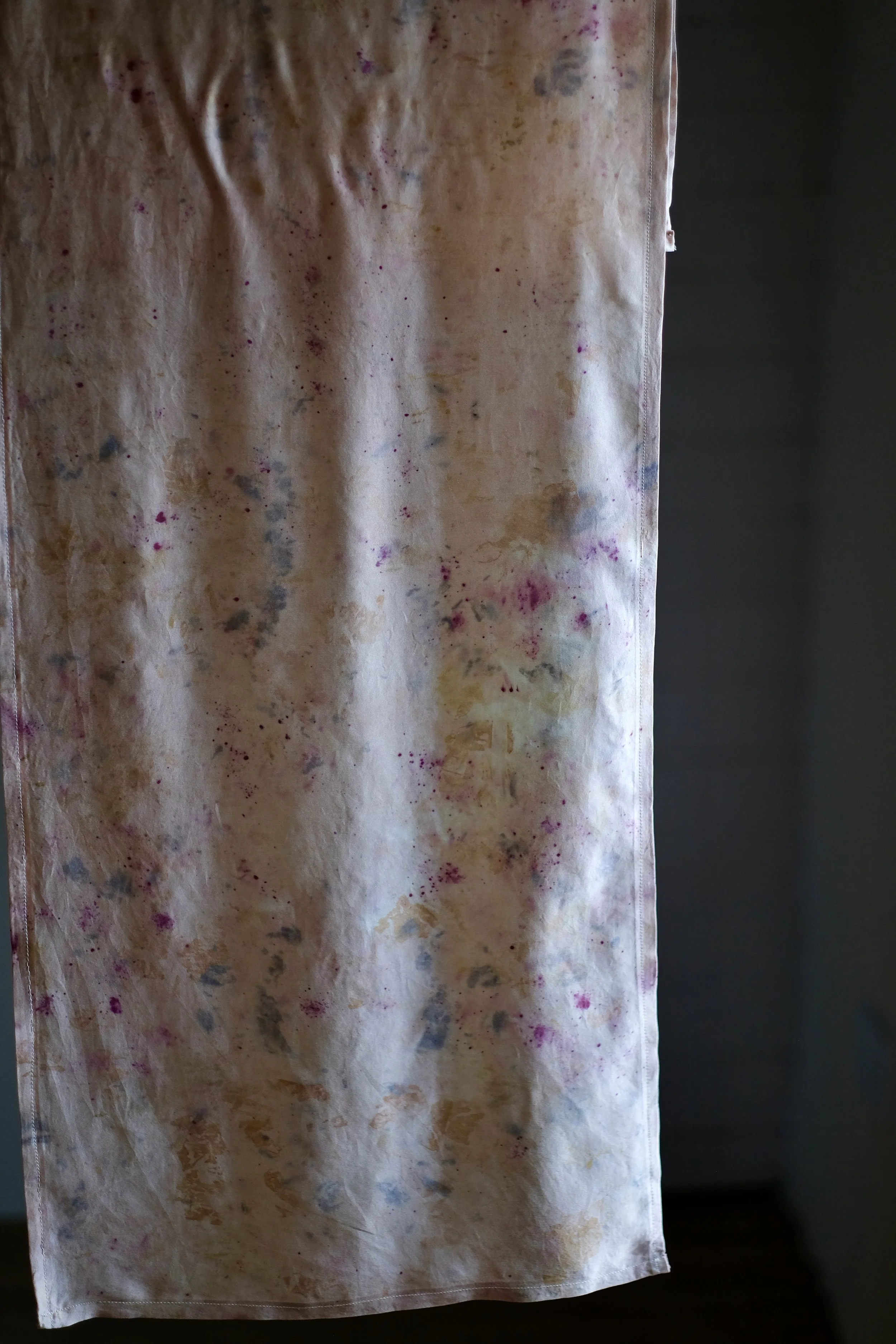 Please be sure to look after delicate natural dyed silks by hand washing with lukewarm water, ph neutral organic gentle soap and air dry. Never put in a washing machine or tumble dryer or use conventional soaps or detergents which can shift or ruin colours.