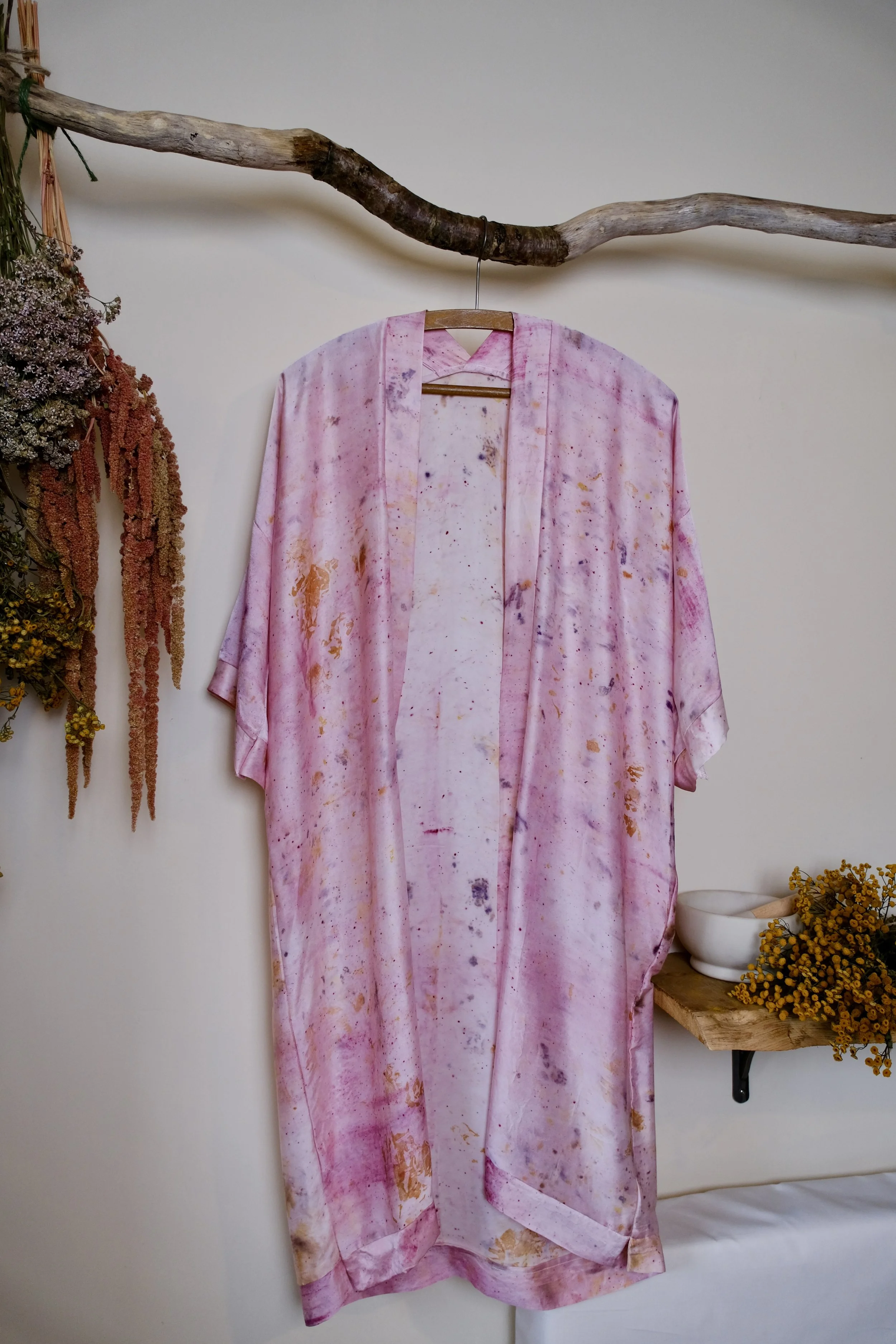 Please be sure to look after delicate natural dyed silks by hand washing with lukewarm water, ph neutral organic gentle soap and air dry. Never put in a washing machine or tumble dryer or use conventional soaps or detergents which can shift or ruin colours.