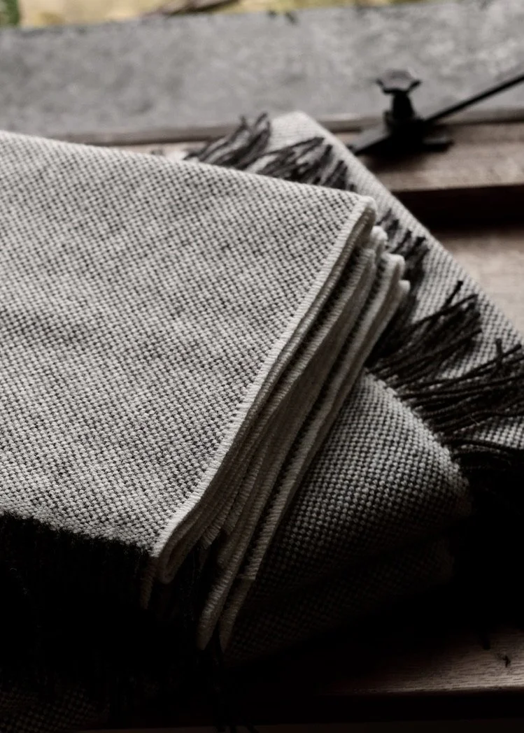 This product is un-dyed, in its natural fleece colours, with a natural white fleece colour on the weft yarn with a natural dark brown fleece colour on the warp, to give a chessboard style.